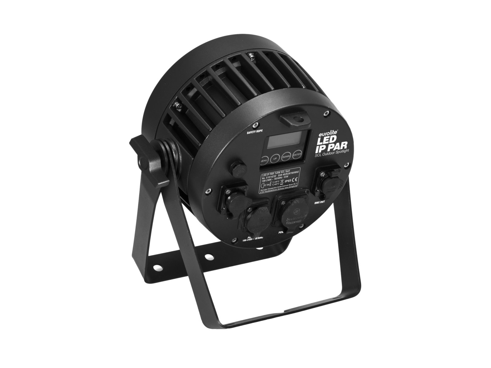 Weather-proof (IP65) spotlight with 7 x 9 W LED and 7in1 SCL RGB/CW/WW/A/UV color mixing