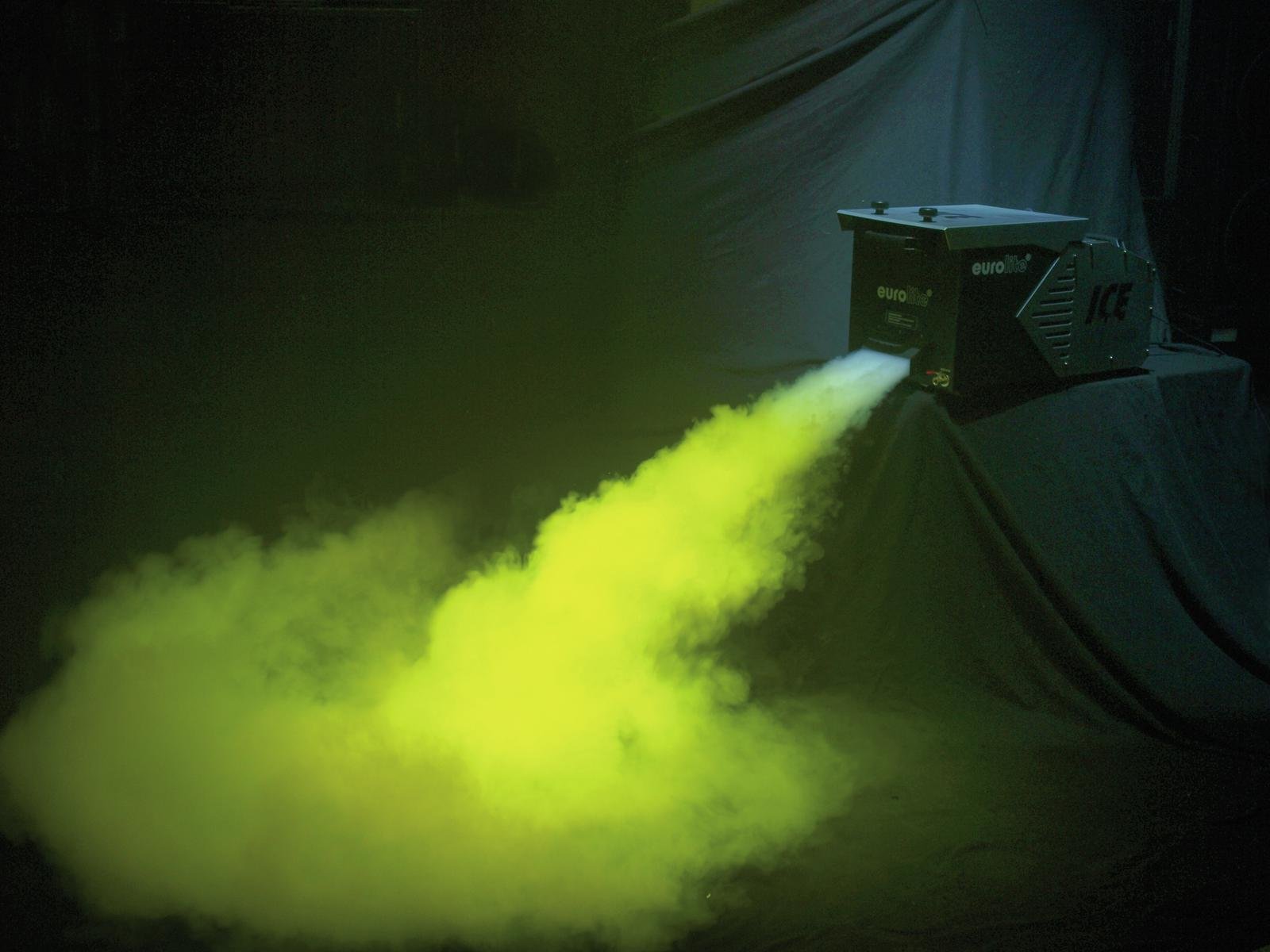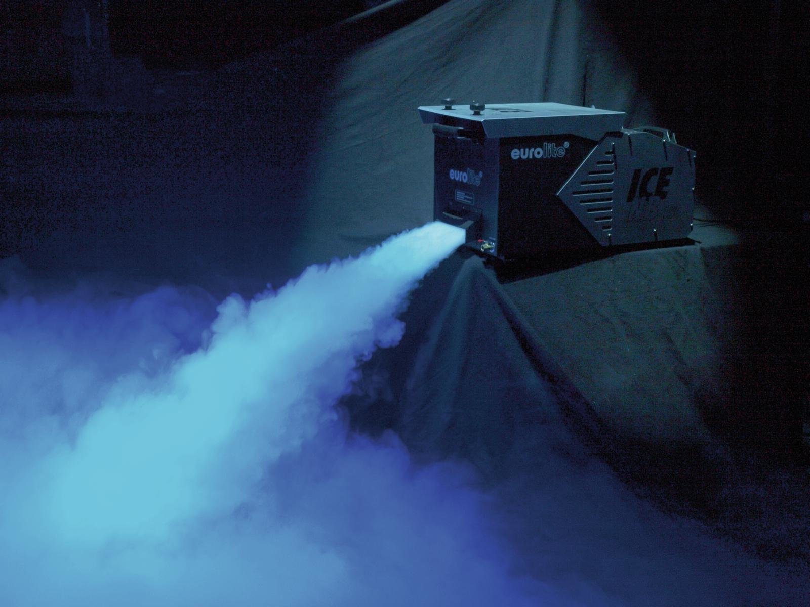 The EUROLITE NB-150 ICE ground fogger produces large quantities of low-lying ground fog. It is ideal for stages and discotheques. The NB-150 ICE can score points with its short warm-up time and low fluid consumption. It works with conventional fog fluid and ice cube cooling.