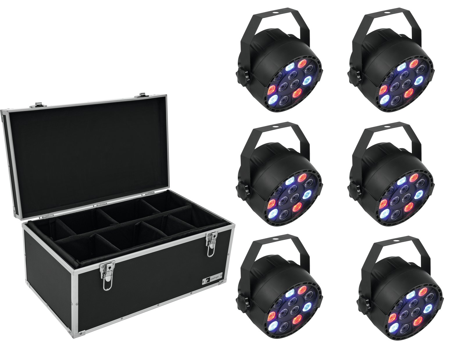 6x compact spotlight with 12 x 1 W LED in RGBW including universal case