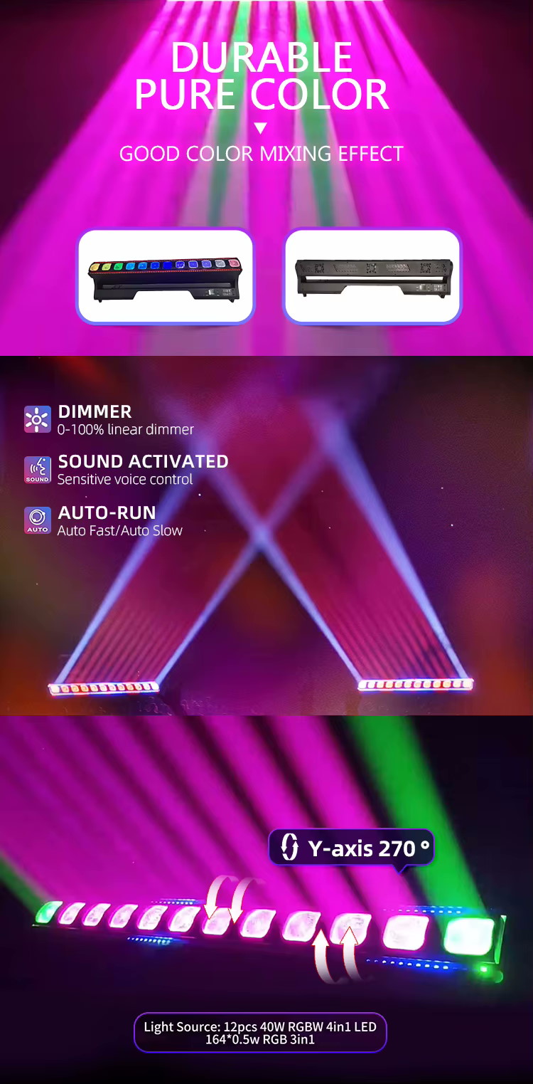 12*40W Beam Moving Bar Light 40W 4IN1 LED 220° 16Bit Y-Axis 3°-30° Zoom Indoor